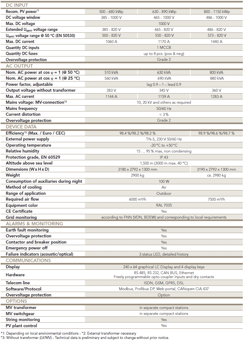 Utility Scale Inverter available with 250, 560, 690 or 880 kVA