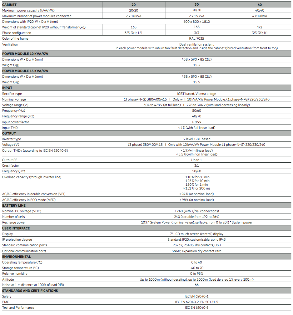 A new concept of UPS systems that combines a modular architecture based on 10 and 15 kVA/kW hot-swappable power modules with a customizable set of options.