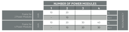 TSE UPS is based around a 10 kVA power module and can be scaled up to 40 kVA capacity or 30 kVA N+1. The modules are hot-swappable and up to four frames can be operated in parallel to achieve a total power capacity of 160 kVA.