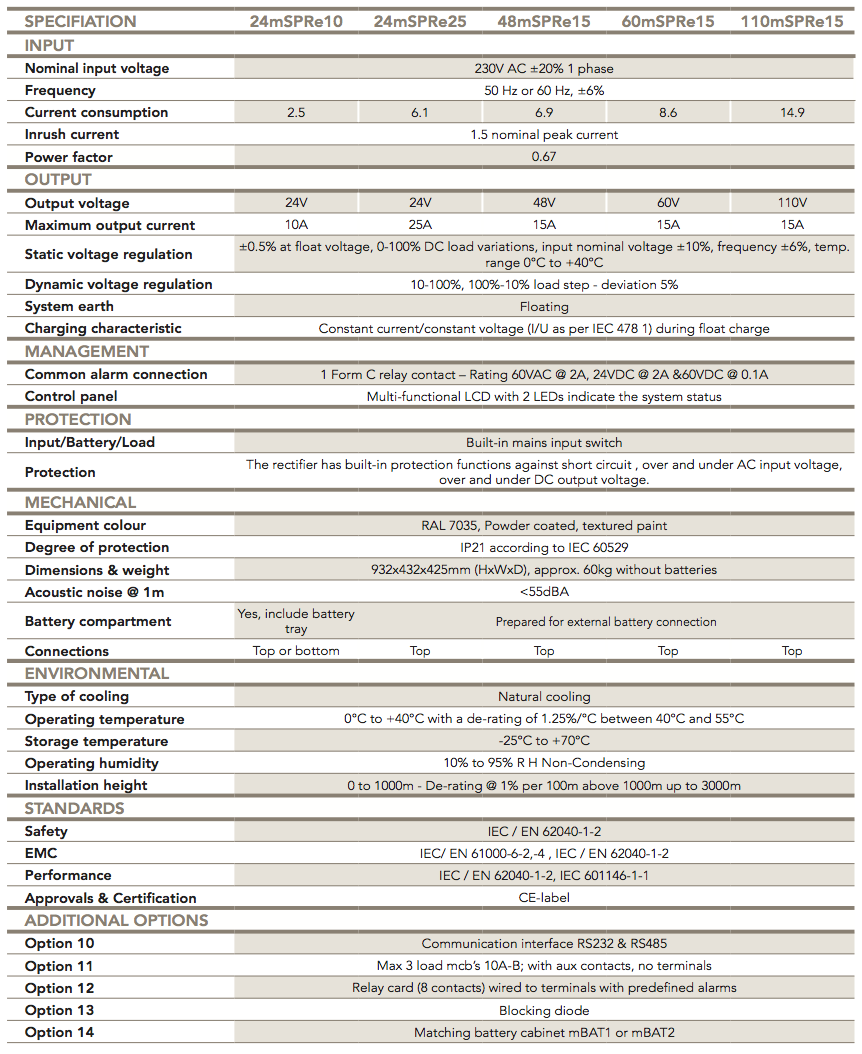 ALFA Power Solutions rectifiers assure permanent availability of all your global industrial applications including Oil, Gas & Petrochem, Power Generation, Transportation and other Infrastructures. The mSPRe has been developed and designed to provide high reliability power supply and battery charging capability in very compact design. The product is using thyristor-controlled technology and it suitable for charging nickel-cadmium or lead acid batteries while supplying DC loads. The small compact system includes all necessary function of modern rectifier to protect the load, optimize the life time of batteries and communicate with environment