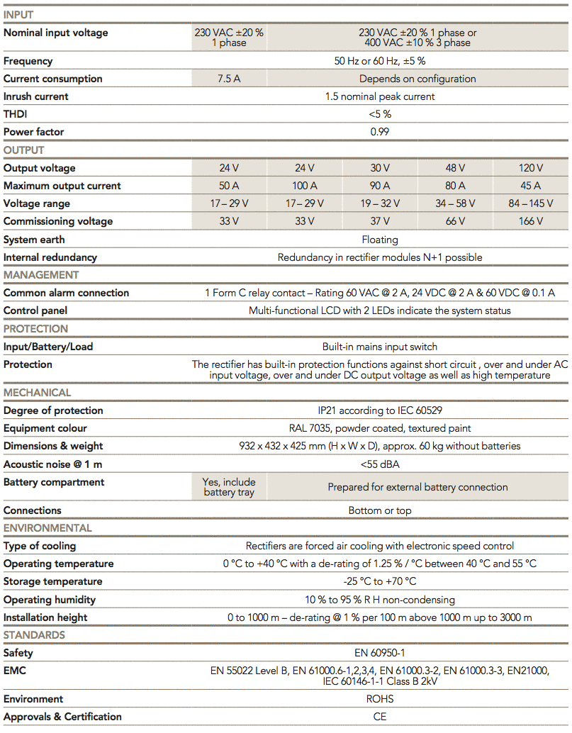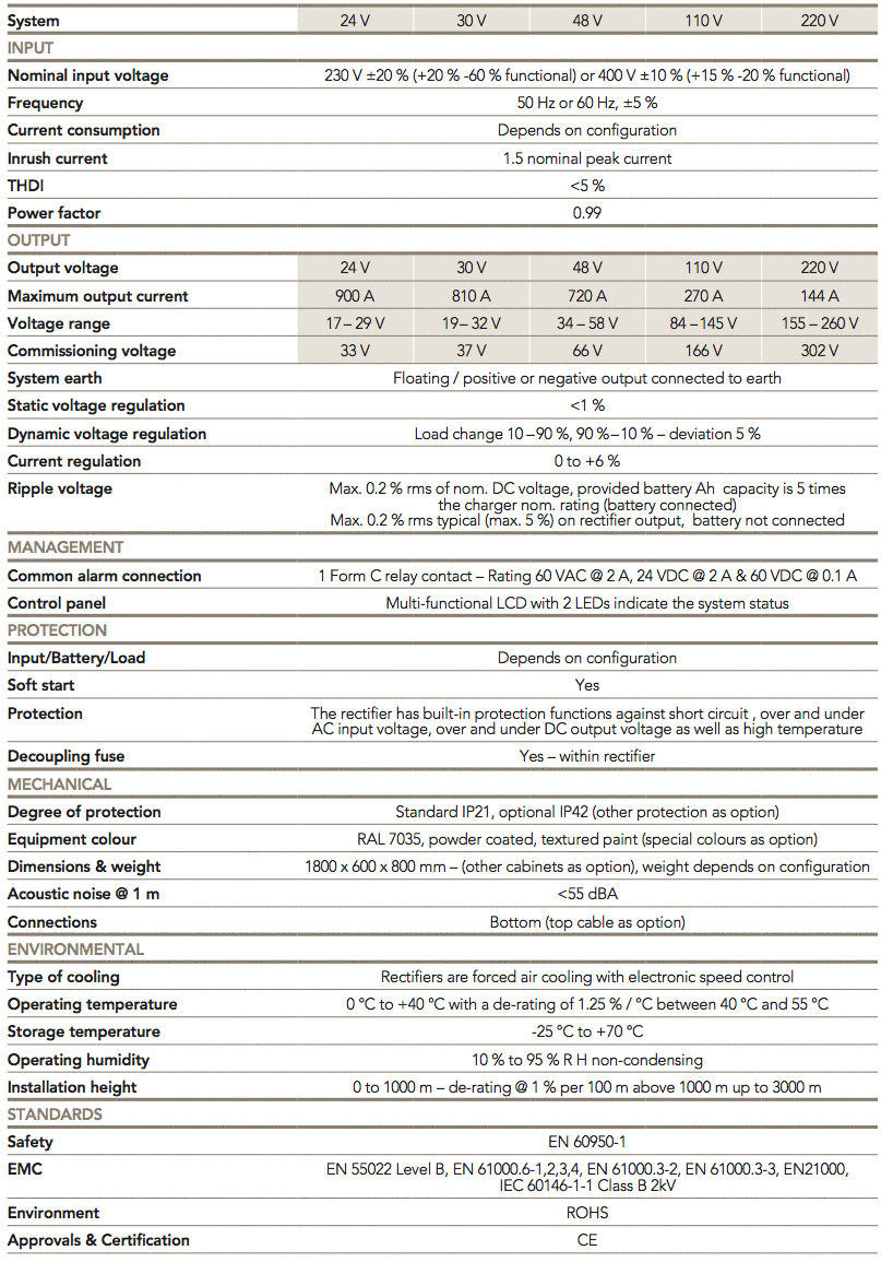 A modular and scalable design with hot-swappable rectifier modules assures low Mean Time to Repair, reduction in the service cost and meets changing needs and future expansion. Power SMP is suitable for charging many types of batteries including: vented lead acid, VRLA or Ni-Cad batteries. It can also be used as a direct power supply.