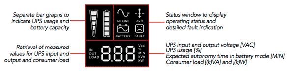 | A redesigned, high-contrast LCD display provides information on all key operating conditions and, in particular, on the remaining autonomy time with the current load and power failure. The systematically refined hardware design with battery-saving charging electronics guarantees many years of use. TSE UPS front panel makes it easy to replace the batteries. |